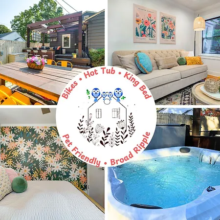 Die 2-Zimmer-Villa Serene Broad Ripple Hot Tub Retreat, King Bed, Free Bikes, Walk To Br Village, 10 Min Drive To Downtown Indianapolis liegt ungefähr 20 Gehminuten vom Broad Ripple Park entfernt und bietet einen Jacuzzi für ein entspannendes Erlebnis.