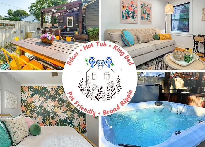 Nestled in the vibrant community of Indianapolis, the Perfect Broad Ripple Retreat With Hot Tub, King Bed, Bikes, Pet Friendly & Fenced Backyard is a delightful haven that combines comfort with modern conveniences. Just 25 km from Mount Comfort, you'll find yourself perfectly positioned to explore both the urban allure of the city and the serene landscapes surrounding it. This villa stands out with its inviting ambiance, inviting guests to unwind and rejuvenate after a day of adventure. In addition to its charm and amenities, the villa offers various services designed to enhance your stay. Biking enthusiasts will appreciate the availability of bicycles for rent, giving you the chance to explore the numerous cycling paths nearby. The property's pet-friendly policy ensures that your four-legged companions are warmly welcomed. Conveniently located, the Perfect Broad Ripple Retreat provides easy access to the cultural highlights of Indianapolis, making it an ideal base for both relaxation and exploration. With transportation options readily available, getting around the area is simple, allowing you to immerse yourself fully in all that this beautiful region has to offer. Whether you're looking for a romantic getaway or an adventurous escape, this retreat is the perfect choice for your Indiana visit.